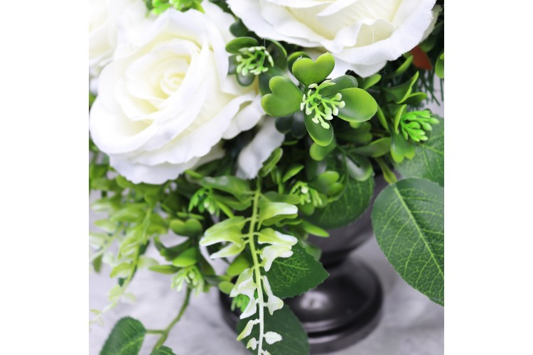• całość w donicy z tworzywa sztucznego i ustabilizowana masą gipsową, dzięki czemu kompozycja jest odporna na działanie niekorzystnych warunków atmosferycznych.